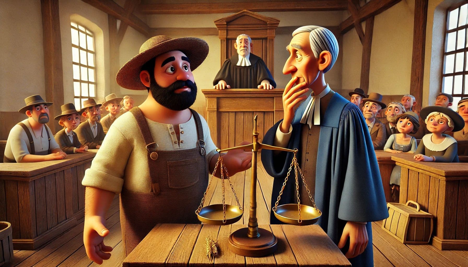 ஒரு விவசாயி ஒரு ரொட்டி தயாரிப்பவருக்கு ஒரு பவுண்டு வெண்ணெய் விற்று வந்தார். ஒரு நாள், ரொட்டி தயாரிப்பவர் அந்த வெண்ணெய்யை எடை போட்டுப் பார்க்க முடிவு செய்தார். எடை சரியாக இல்லை என்பதை அவர் கண்டுபிடித்தார். இதனால் கோபமடைந்த அவர், விவசாயியை நீதிமன்றத்திற்கு இழுத்துச் சென்றார்.