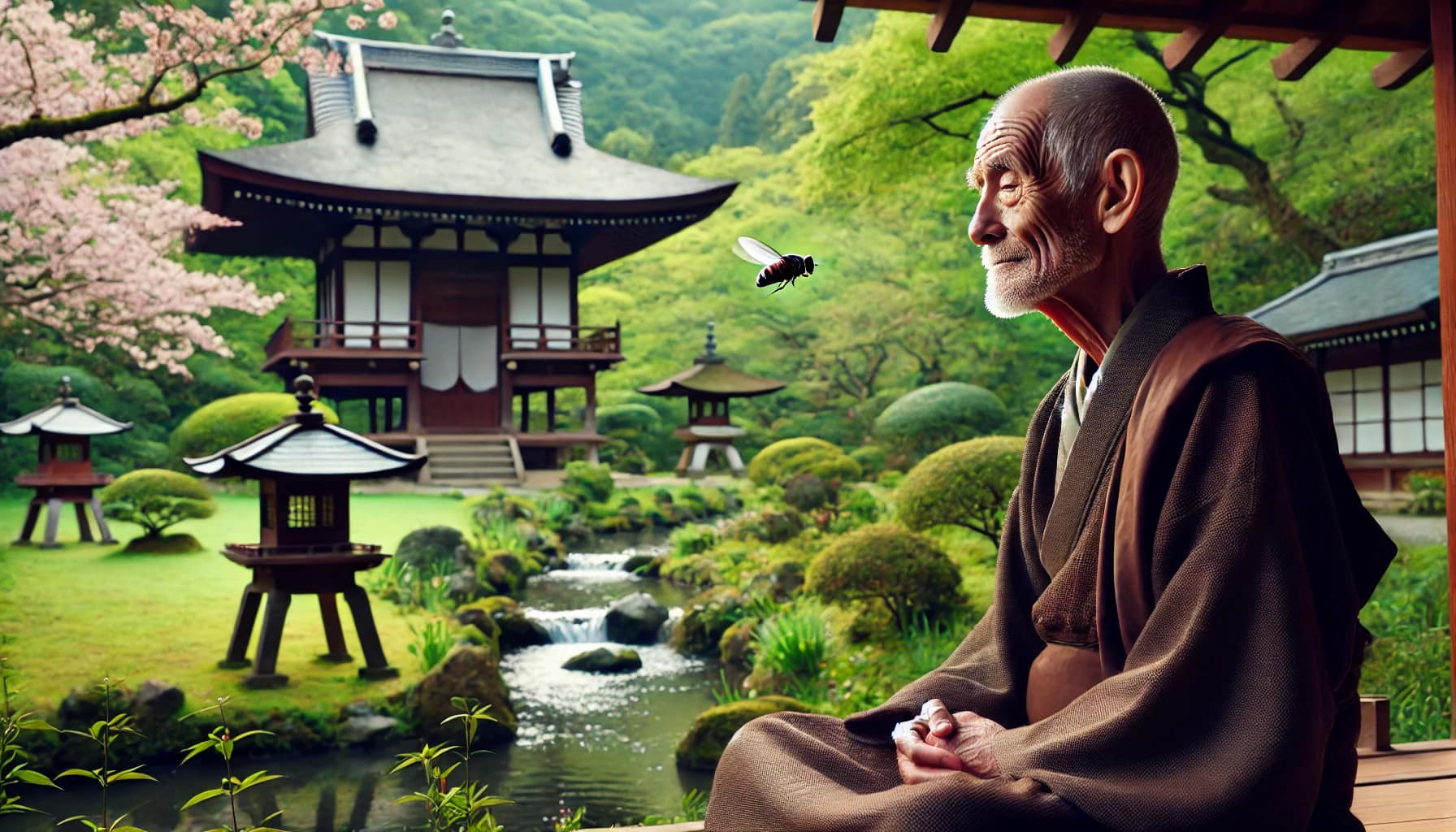 தியானிக்கக் காத்திருந்தவர், ஈயின் ஒலி காரணமாக அதில் முழுமையாக மூழ்க முடியவில்லை. அவர் மனதுக்குள் கோபமும் ஏமாற்றமும் தோன்றியது. “இதை எப்படி சமாளிப்பது?” என்று தீவிரமாக யோசித்தார்.